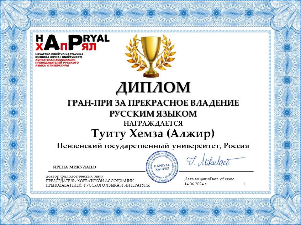 Гран-при за прекрасное владение русским языком: Туиту Хемза, 20ИЛК1