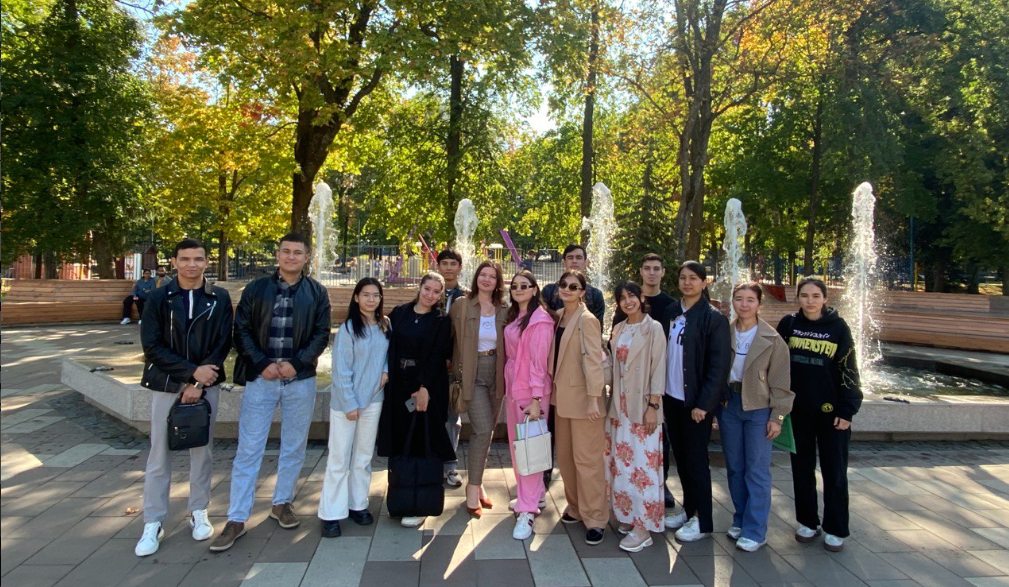 Студенты группы 21ИЛК1 с куратором группы Л.Ю. Семёновой, доцентом кафедры «Русский язык как иностранный», в Информационно-выставочном центре ПГУ.
